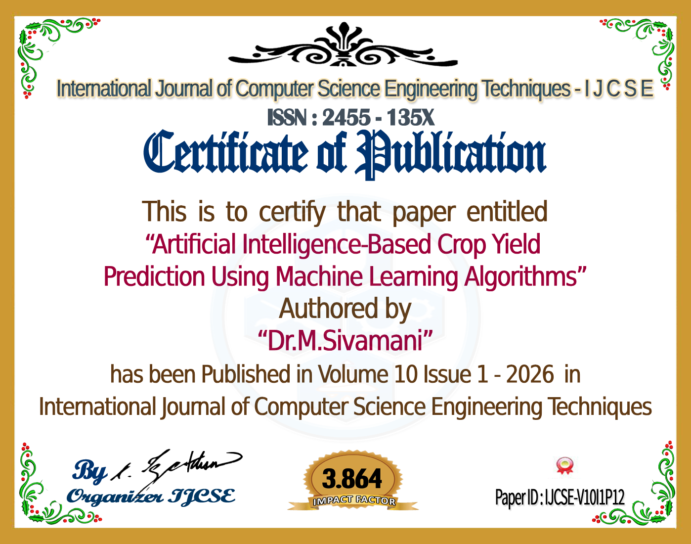 Artificial Intelligence-Based Crop Yield Prediction Using Machine Learning Algorithms | IJCSE Volume 10 â Issue 1 | IJCSE-V10I1P12