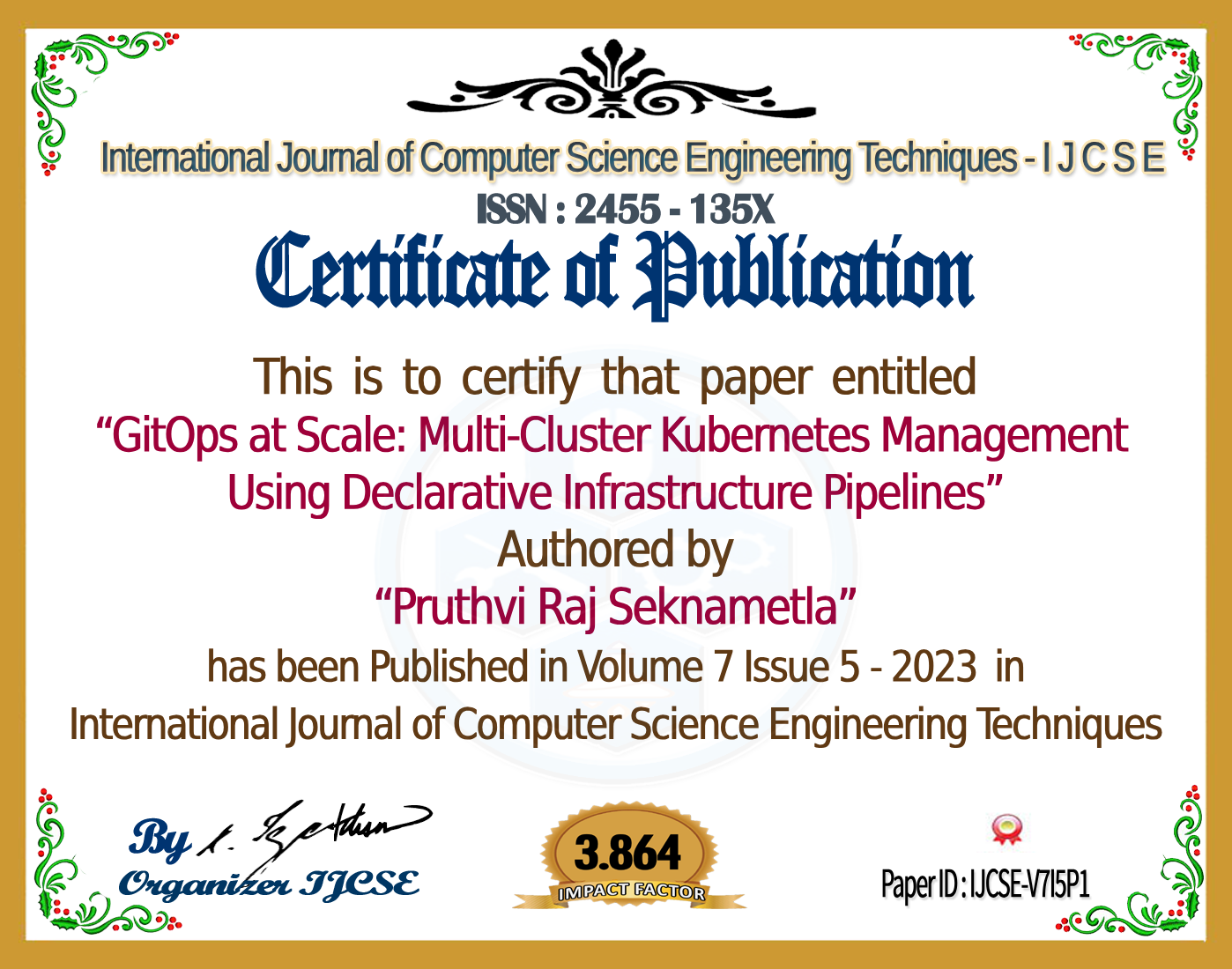This paper presented a scalable GitOps framework for multi-cluster Kubernetes management that leverages declarative infrastructure pipelines, hierarchical repository structures, and a novel fleet management abstraction. Experimental evaluation across environments spanning 5 to 50 clusters demonstrated that the proposed approach reduces configuration drift incidents by 87%, achieves reconciliation throughput of 312 resources per second, and recovers from failures in under 19 seconds. The integration of policy-as-code enforcement ensures compliance validation prior to deployment propagation, addressing a critical gap in existing GitOps tooling.