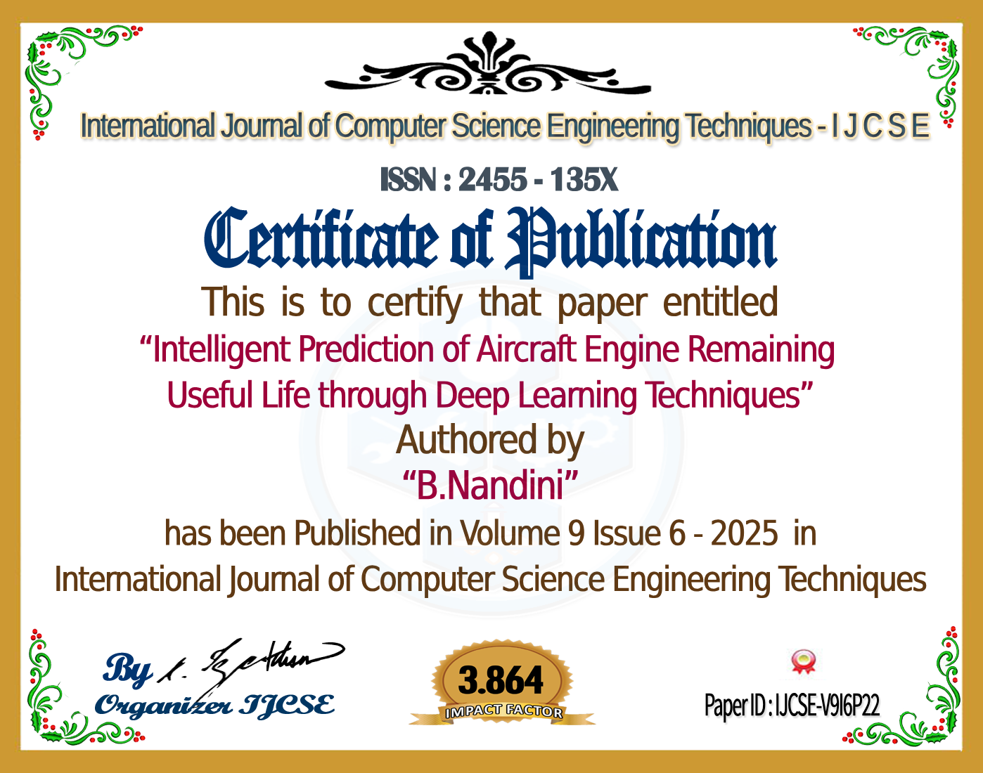 Intelligent Prediction of Aircraft Engine Remaining Useful Life through Deep Learning Techniques | IJCSE Volume 9 – Issue 6 | IJCSE-V9I6P22
