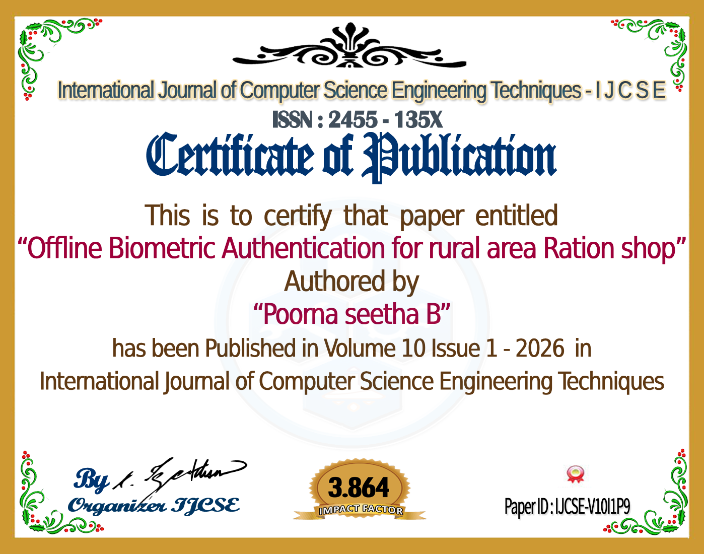 The proposed Offline Biometric Authentication System for Rural Area Ration Shops provides a secure and efficient solution to overcome the challenges of traditional ration distribution systems. By integrating biometric authentication with RFID technology, the system ensures accurate identification of beneficiaries and prevents fraudulent practices such as duplicate and fake entries. The offline functionality makes the system highly suitable for rural and