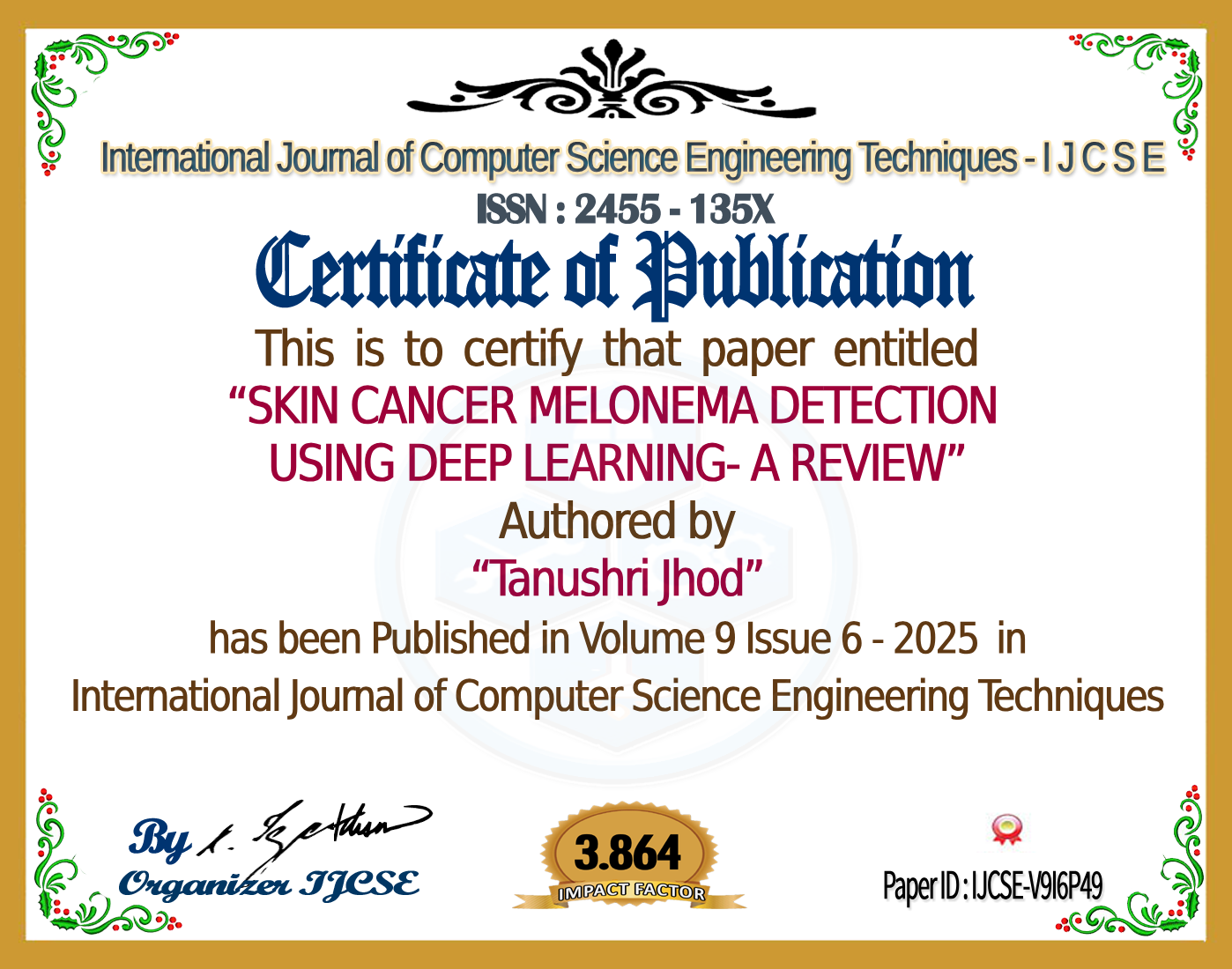 SKIN CANCER MELONEMA DETECTION USING DEEP LEARNING- A REVIEW | IJCSE Volume 9 ā Issue 6 | IJCSE-V9I6P49