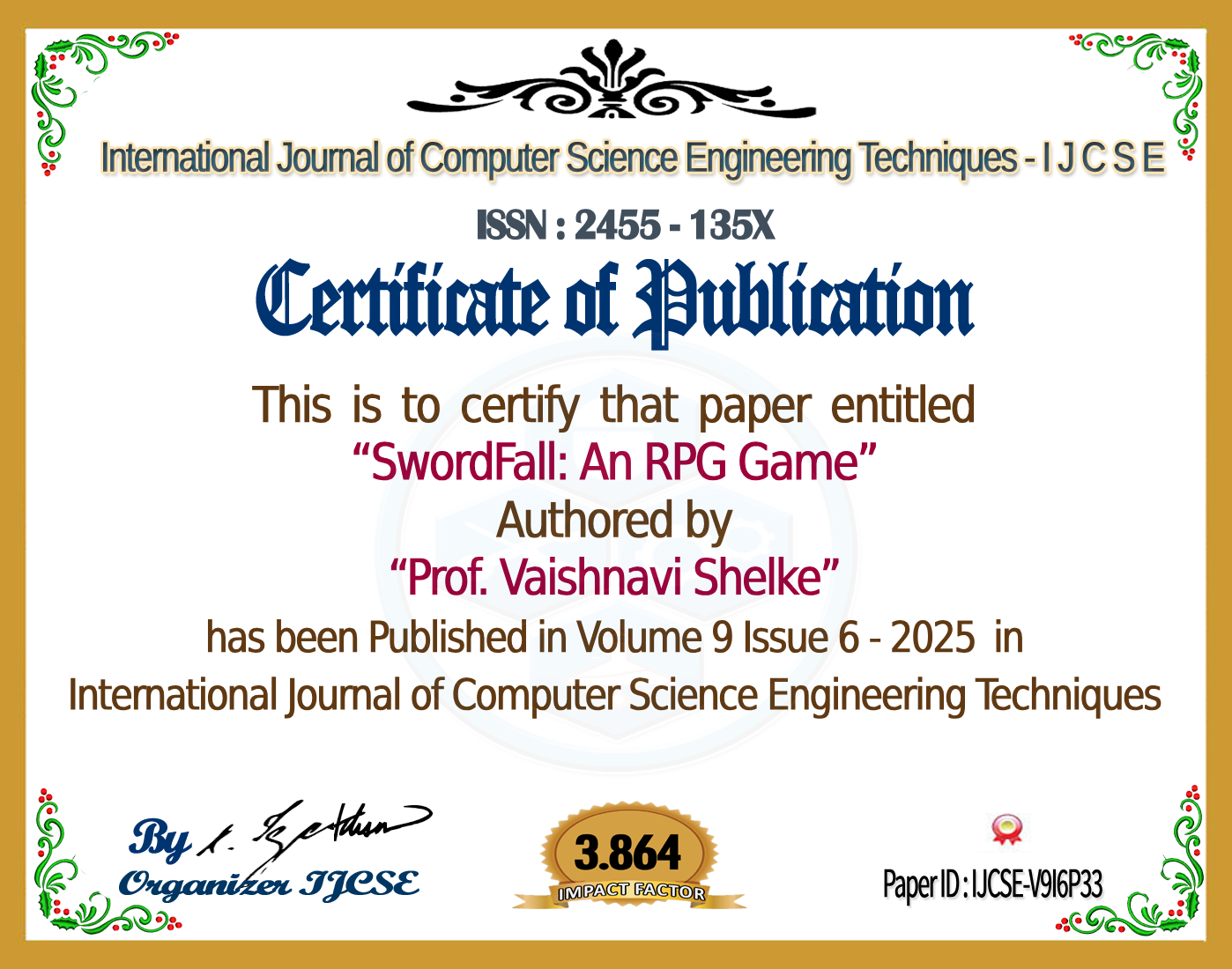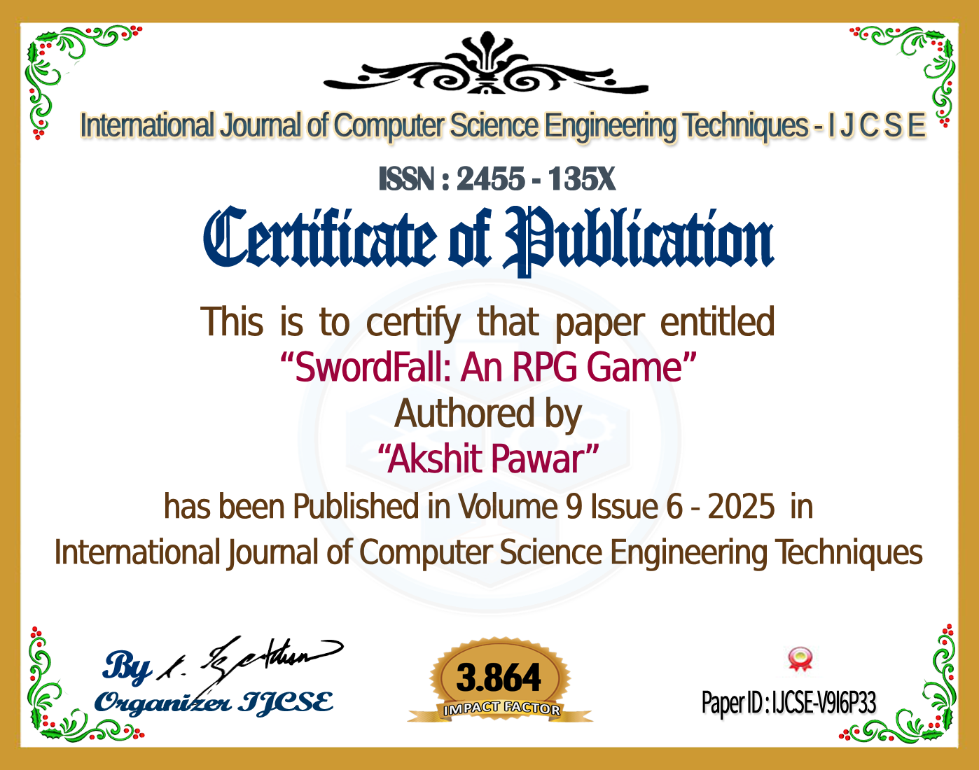SwordFall: An RPG Game | IJCSE Volume 9 – Issue 6 | IJCSE-V9I6P33